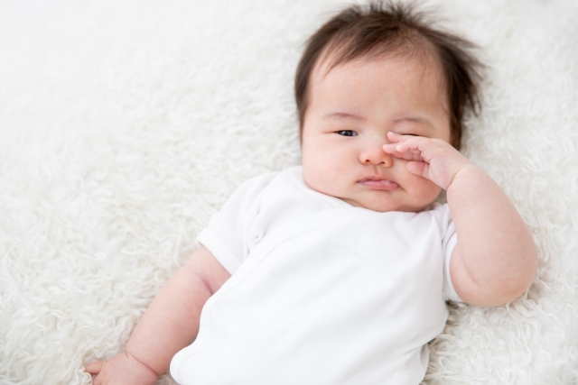 泣いたときや入浴後など、血流が良くなると一時的に赤みが濃くなることもありますが、時間が経つと元の薄さに戻る傾向にあります。